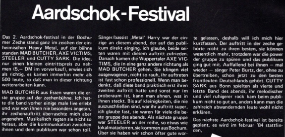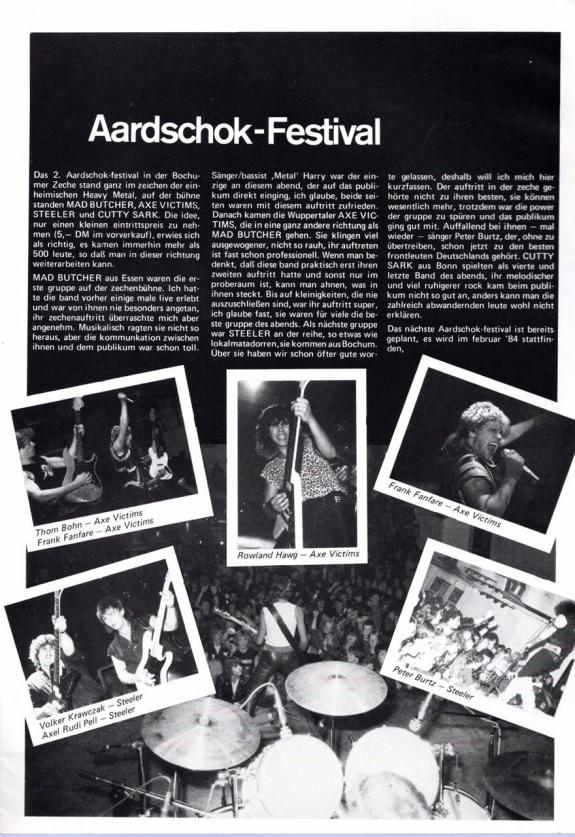 Die Fan-Schar wuchs und AXE VICTIMS bekam beste Kritiken im In- und Ausland. Einschlägige Magazine, wie das englische Kerrang oder der deutsche Matal Hammer lobten die Band und prophezeiten ihr eine hoffnungsvolle Zukunft. Der Höhepunkt der actiongeladenen Live-Show war jedes Mal der Auftritt des Henkers, der seine gewaltige Axt unter Donner und Magnesiumblitzen niedersausen ließ. Alle Fans erwarteten mit Spannung das zweite Album der Band.